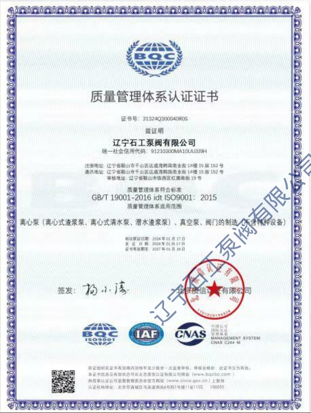 遼寧石工泵閥 有限公司 致力于研究、設計、生產及銷售各種工業水泵。公司秉承“質量為主,客戶至上”的原則,為客戶提供渣漿泵、壓濾機入料泵、液下泵、清水泵、多級泵、雙吸泵、管道泵、化工泵、氟塑料泵、潛污泵、深井泵、潛水渣漿泵、泡沫泵、沙礫泵等產品。公司有多年的生產經驗,良好的管理體系和質量保證體系,我公司擁有雄厚的生產技術力量,完善的生產保障、質量保證監督體系和專業型精神隊伍。 產品主要為煤炭、電力...